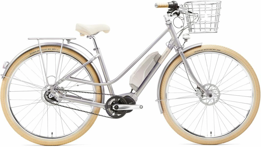 Classé dans la catégorie des vélos de ville électriques, le Creme Eve ‘E 5 Femme associe une batterie de 504 Wh à un moteur Shimano Shimano STEPS E5000. En France, il est commercialisé à partir de 3 299 €.