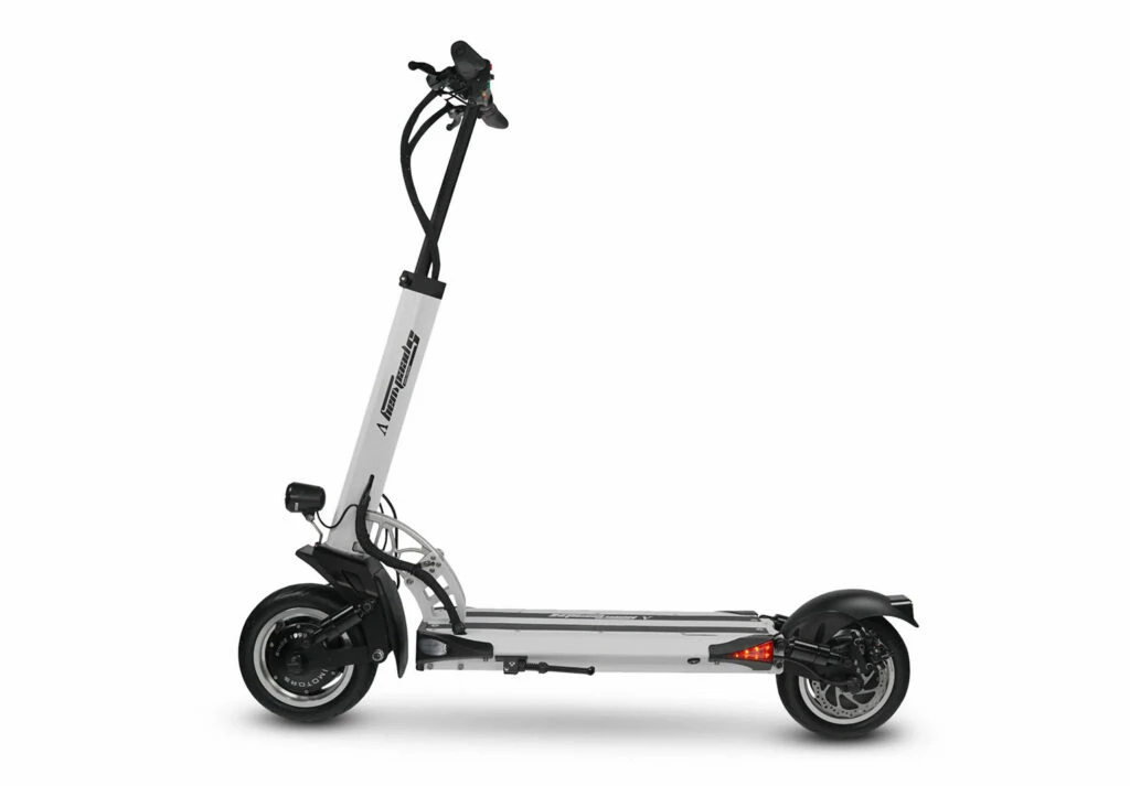 Dotée d’une double motorisation avec un moteur intégré dans chaque roue, la trottinette électrique de Dualtron cumule 1000 W de puissance et autorise jusqu’à 60 km/h de vitesse maximale.