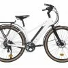 Monté sur un cadre en aluminium, le Eovolt City X reçoit une fourche aluminium, des freins nutt hydrauliques .