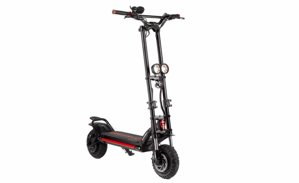 Dotée d’une double motorisation avec un moteur intégré dans chaque roue, la trottinette électrique de Kaabo cumule 2400 W de puissance et autorise jusqu’à 80 km/h de vitesse maximale.
