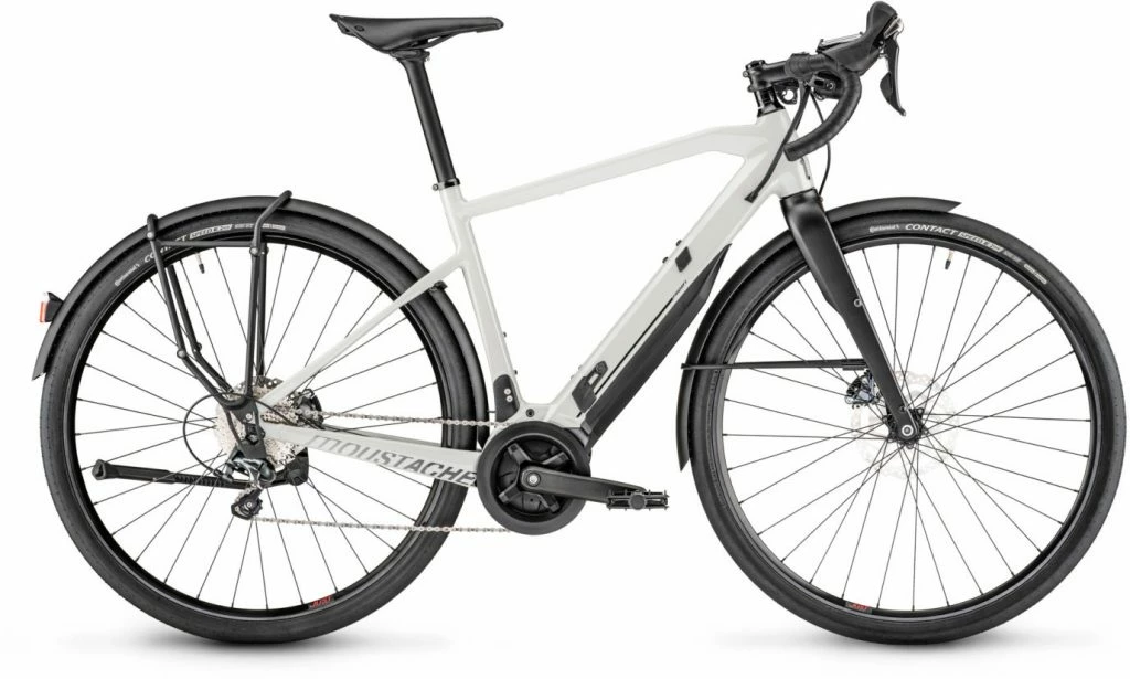 Monté sur un cadre en friday 28, le Moustache Friday 28.7 reçoit une fourche friday, des freins à disque hydrauliques shimano tiagra / disques shimano, 180mm avant et 160mm arrière . Avec sa batterie, il pèse 20 kilos.