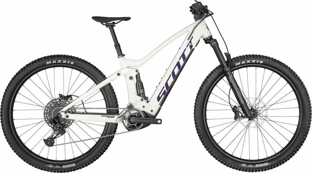 Monté sur un cadre en aluminium / virtual 4 link kinematic vlk 27.5″ and 29″ compatible / geo adj. / boost 148x12mm 140mm travel / bosch gen4 / integr. removable battery tapered headtube e2, le Scott Contessa Strike eRIDE 920 reçoit une fourche marzocchi z2 air / emtb+ rail 3 / 3-modes / 15x110mm qr axle / tapered steerer 44mm offset / reb. adj. / lockout / 140mm travel, des freins shimano br-mt420 4 piston, disques avant: sm-rt64 cl 203mm / arrière: rt-em600 cl 203mm . Avec sa batterie, il pèse 23 kilos.