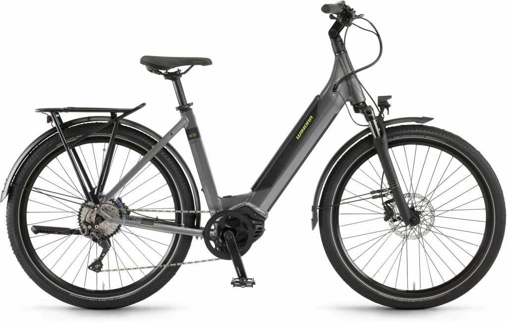 Classé dans la catégorie des vélos de ville électriques, le Winora Sinus iX10 associe une batterie de 500 Wh à un moteur Bosch Bosch Performance CX. En France, il est commercialisé à partir de 3 499 €.